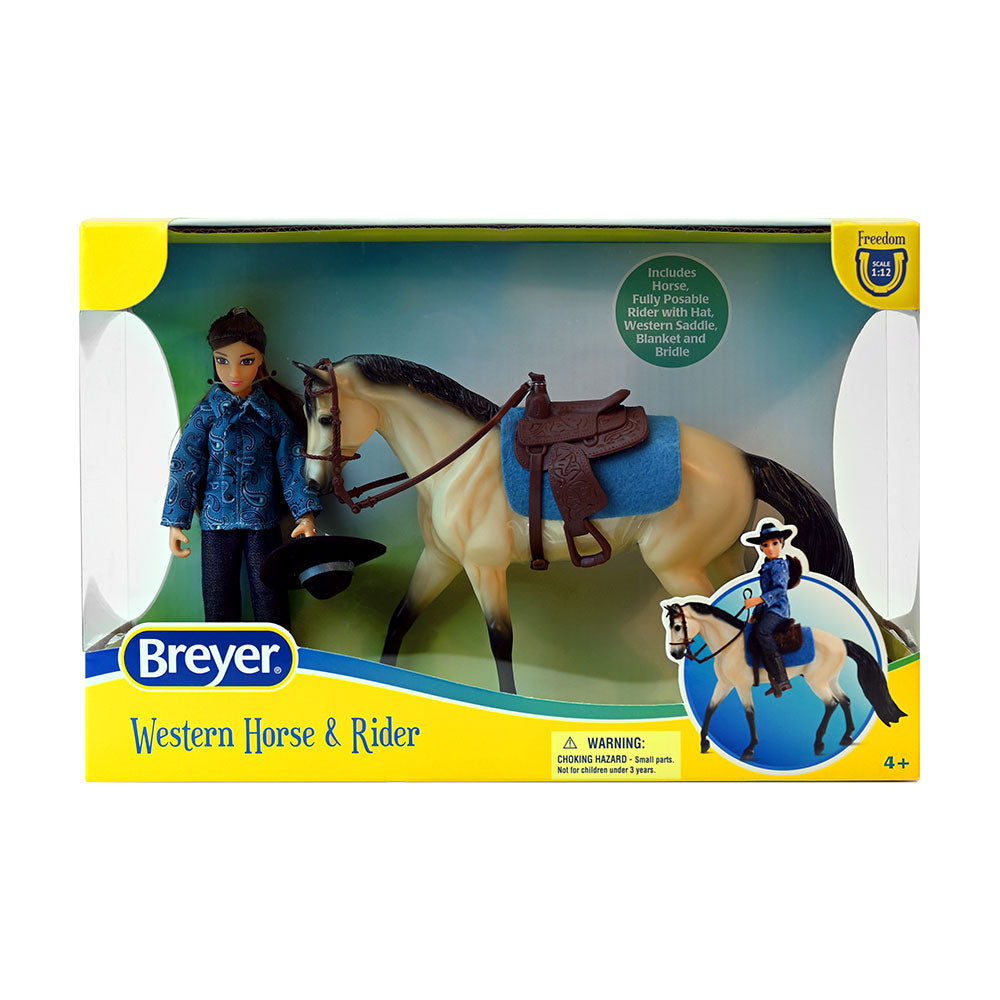 - Includes 6" articulated rider, horse, saddle pad, Western saddle, and bridle.
