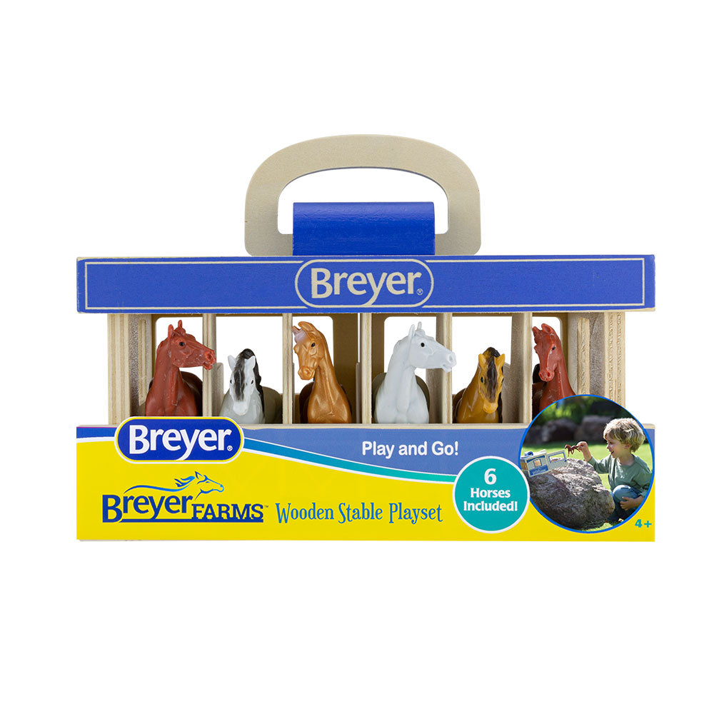 - Play and go! This high-quality wood stable comes complete with 6 Stablemates horses.